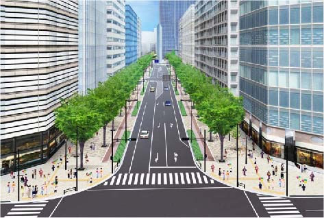 高層ビルの下に地下トンネル