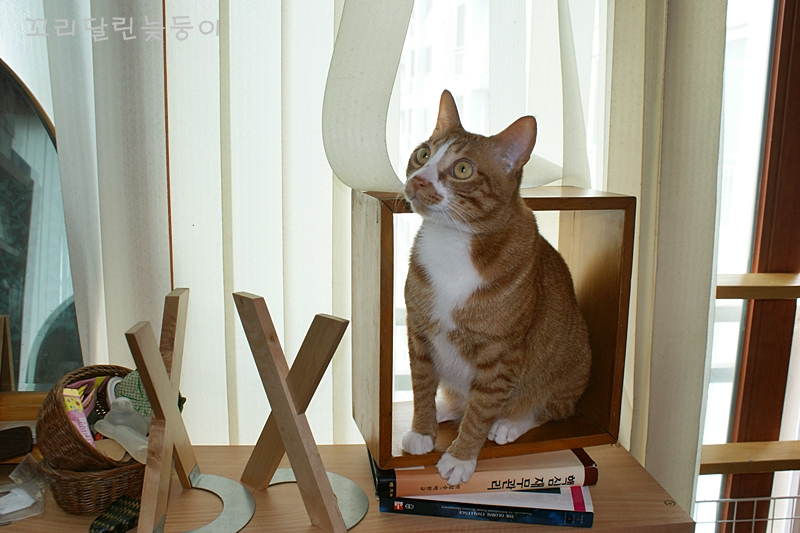 식탁, 싱크대 위는 자기 놀이터이고, 쇼파를 스크래쳐로 애용중이지요.