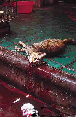 고양이의 가죽을 벗기거나 새끼 고양이를 죽이거나 하고 있었습니다.