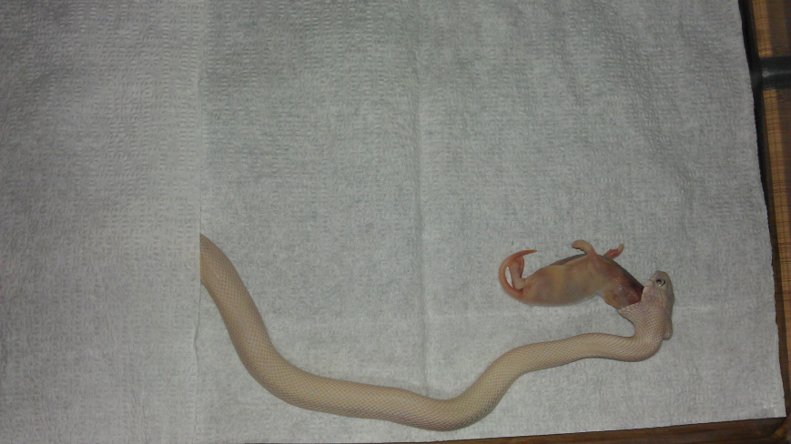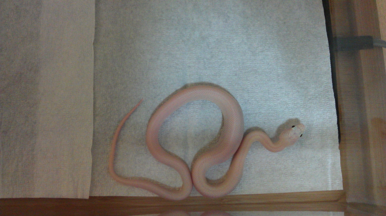 Leucistic Texas Rat Snake 가 탈피하고 처음으로