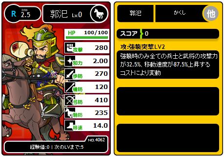 コスト2のCとUCしかなかった郭汜も今ではR進出です。