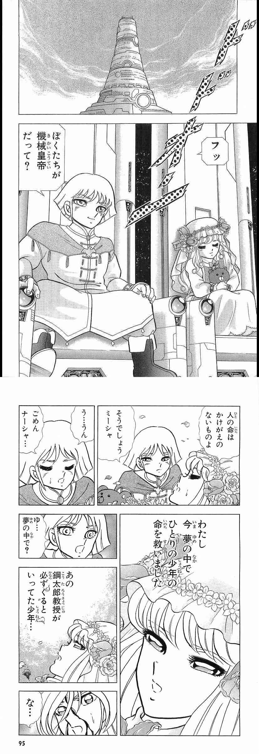 機械皇帝は宇宙空間にある衛星内の生命維持装置で命を繋ぎ、ホムンクルスの唯一の成功作・B"Tラファエロが完全体となる事を待ち望んでいた。