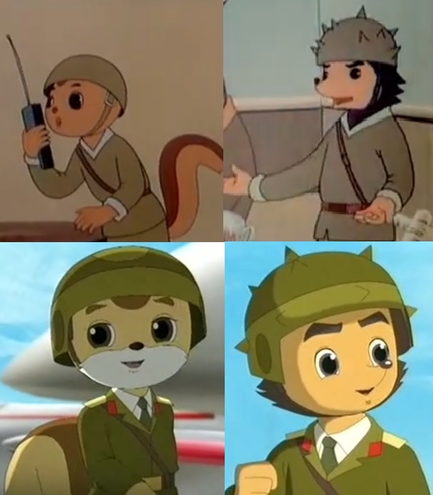 주인공인 다람쥐와 고슴도치, 오리. 북한을 상징.