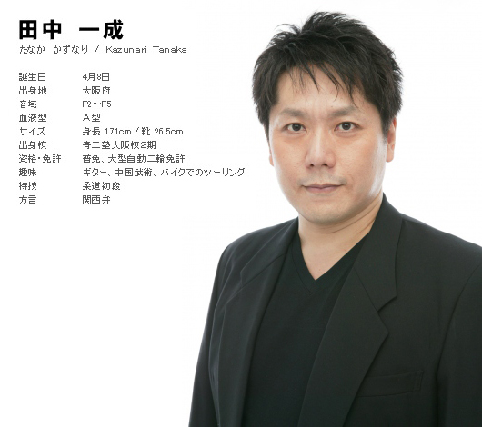 성우 타나카 카즈나리씨가 10일, 뇌의 중추부 출혈 때문에 사망했다.49세였다.11일에 소속 사무소의 공식 사이트에서 발표되었다.