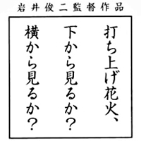 이와이 šœ2 감독의 이름을 세상에 알리게 한 걸작 드라마「불꽃놀이, 아래에서 볼까?옆에서 볼까?」가, 각본・무인(「모테키」「바크 맨.」), 총감독・ 신방소지(「마법 소녀 창문인가☆마기카」)의 태그에 의해, 애니메이션 영화로서 다시 태어나는 것이 밝혀졌다.