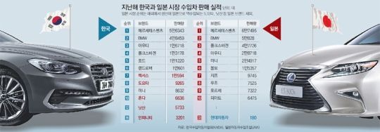 작년 일본에서 팔린 한국차 180대 vs한국에서 팔린 일본차 3만 5429대
