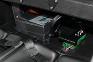 車内のシートを動かすと現れる専用充電器。取り外しも可能