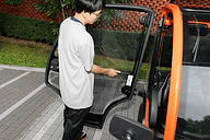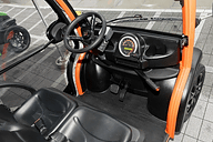 車外でカードリーダーにカードキーをかざして認証後、カードキーを車内にあるカードリーダーに差 し込むことで発進できるようになる。車内の装備はステアリング(角度固定式)、マルチファンクションメーター、ホーン、メーター内ディスプレイの表示切り 替え用モードスイッチ、フロントウィンドウの曇り止めヒーターのON/OFFスイッチ、ライト・ワイパー・ウインカー兼用レバー、パーキングブレーキレ バーなど。