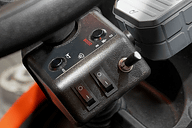 ステアリング右側にあるスイッチ類。走行モードは右手前のトグルスイッチで切り替える