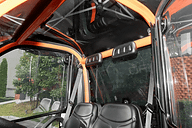車内にルームミラーはなく、後方確認はサイドミラーを見るか、振り返って目視する。右側サイドミラーは、サイドドアの装着状態では位置関係やドア形状の点 から視認性が落ちるため、右側後方を確認しにくいので注意が必要だ。エアコンはなく、夏場の走行時はルーフや後部窓を開放するのが基本になるだろう。もし くは着脱式のサイドドアを取り外して走行するのもOKだ。