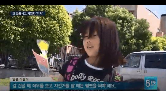 [일본의 아이:도로를 횡단할 때는 좌우를 보고, 자전거를 탈 때는 헬멧을 사용하지 않으면 안됩니다.]