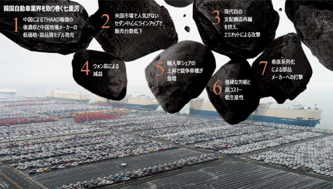 한국 자동차 산업 협회의 금용근(김·용) 회장은 「노동 구조나 정부의 규제 등, 한국은 자동차 생산 기지로서의 매력을 서서히 잃고 있다.대규모 개혁이 없으면, 한국의 자동차 생산 대수는 더욱 더 감소해, 한국의 제조업도 축소해 나가게 된다」라고 경고했다.