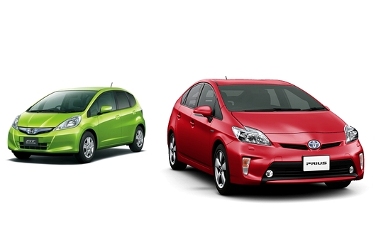 2位のHonda「FIT (HYBRID)」と1位のTOYOTA「PRIUS」。どちらもHVだが、さらにEVやPHVへの進化が始まっている。