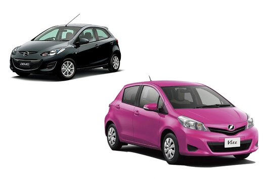 14位のMAZDA「DEMIO」と6位のTOYOTA「Vitz」。MAZDAのSKYACTIVテクノロジーは、「CX-5」を始め、2012年も続々と市販車に反映されていくことが決まっている。