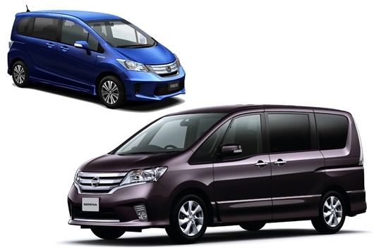 11位のHonda「FREED (HYBRID)」と8位のNISSAN「SERENA」。2012年は「SERENA」にもHVモデルが加わる予定。