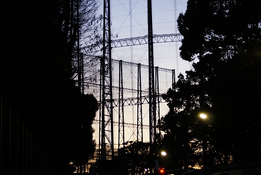 아직 일출전입니다만, 진구구장의 곁까지 왔습니다.