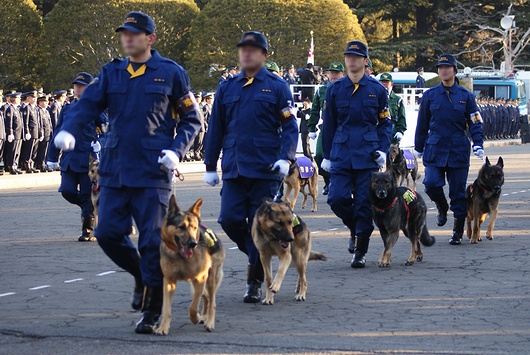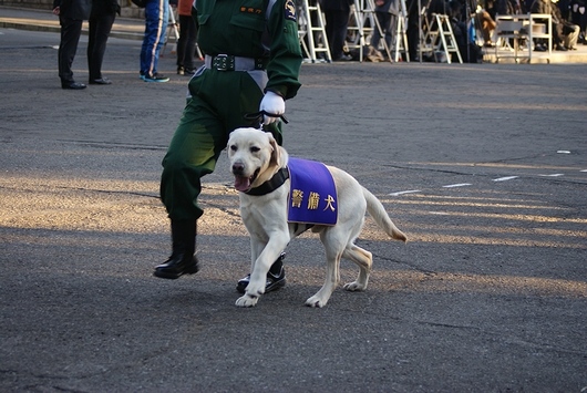 警察犬・警備犬の行進。