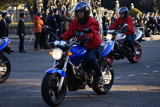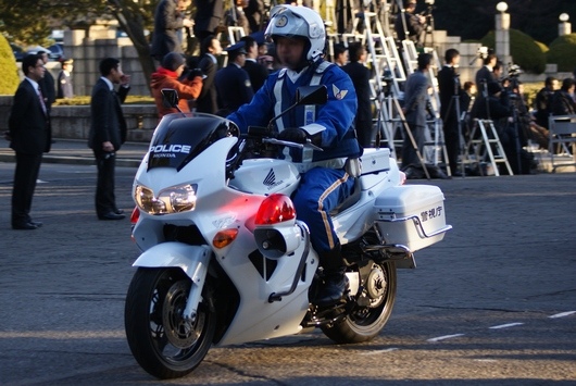 교통 기동대의 경찰 오토바이.Honda 「VFR 800」을 타고 있는 대원은 여성입니다.금년의 대열은 「VFR 800」(와)과「CB1300」로 구성해 있었습니다.