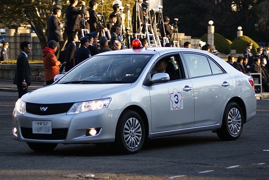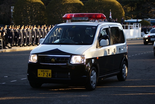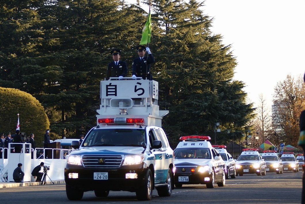 예년이라면 NISSAN 「SKYLINE」나 SUBARU 「IMPREZA」, 금년의 복면 경찰차는 흑의 TOYOTA 「ALLION」로 통일하고 있었습니다.