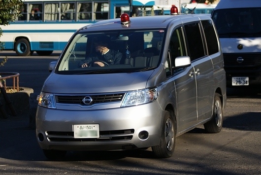 NISSAN 「SERENA」의 복면 경찰차.적색 회전등은 착탈할 수 있을 것입니다만, 「SERENA」는 붙이고 있을 뿐이 되어 있는 차량이 많습니다.
