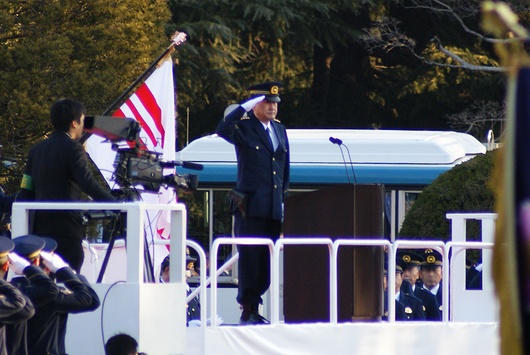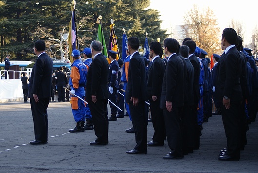 警視総監が訓示を読み、年頭部隊出動訓練は終了しました。