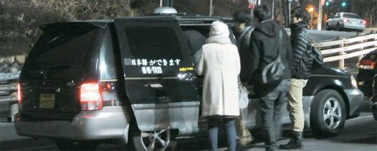 일본인 관광객의 곰 사나이・마오코씨(47)는 지난 달 29일밤, 서울 동대문(동대문) 일대에서 쇼핑을 즐겼다.0시가 지나 충무로(충무로) PJ호텔로 돌아오려 하고 있던 참, 검은 밴 1대가 가까워져 왔다.운전기사는 창을 열어「이랏샤이마세」라고 외쳤다.차의 도어에는「콜 밴 TAXI」「일본어를 할 수 있습니다」라고 하는 문자가 쓰여져 있었다.