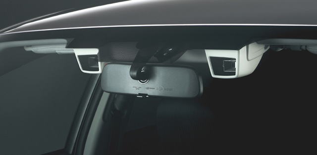 ステレオカメラ方式。レーダー方式と違い、ハードウェアの追加が少なく価格も10万円程度とコストが安いのが特徴。