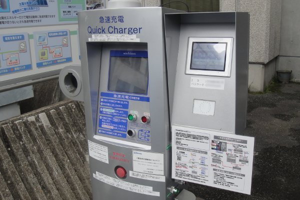 さて充電しようかと急速充電器を見ると、何やらラミネートされた説明書きが貼られていたので、まず読んでみます。その内容は「充電するにはネットで登録してIDとパスワードを取得する必要があるから、やり方を教えるね♪」てな感じでした。
