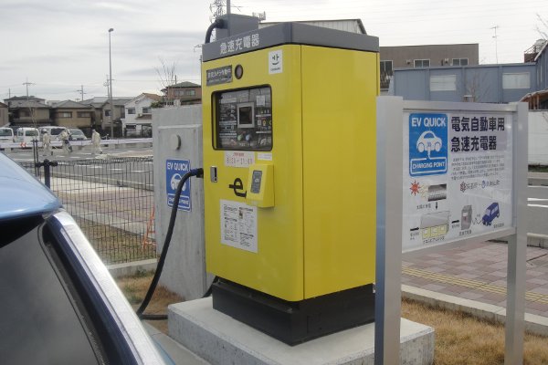 脇の大型パネルには、「太陽光で発電した電力を蓄えて、直流500Vで急速に電気をぶっ込むぜ!」みたいな説明が書かれていましたよ。