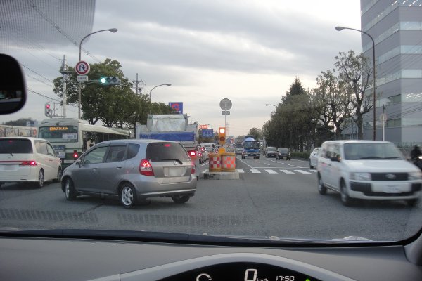 この交差点では、信号の現示に関係なく次から次へと車が左折していきましたが、こんな標識って全国共通なのかしら。