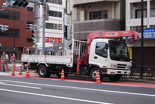 이케부쿠로 부근에서 시부야 부근까지, 메이지 도리에 끝없이 놓여진 콘이나 경찰 차량.