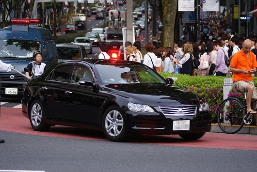 神宮前交差点にやってきたTOYOTA「MARK X」の覆面パトカー。