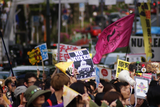 “NO NUKES”、「全原発 即廃止」などと書かれたプラカードの数々。