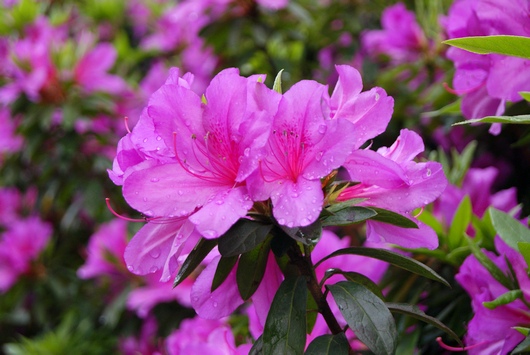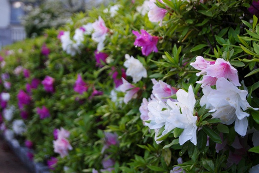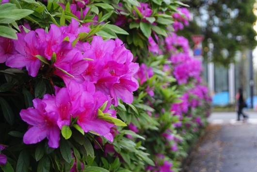 街路樹のサツキ(ツツジ)が綺麗だったので撮影。