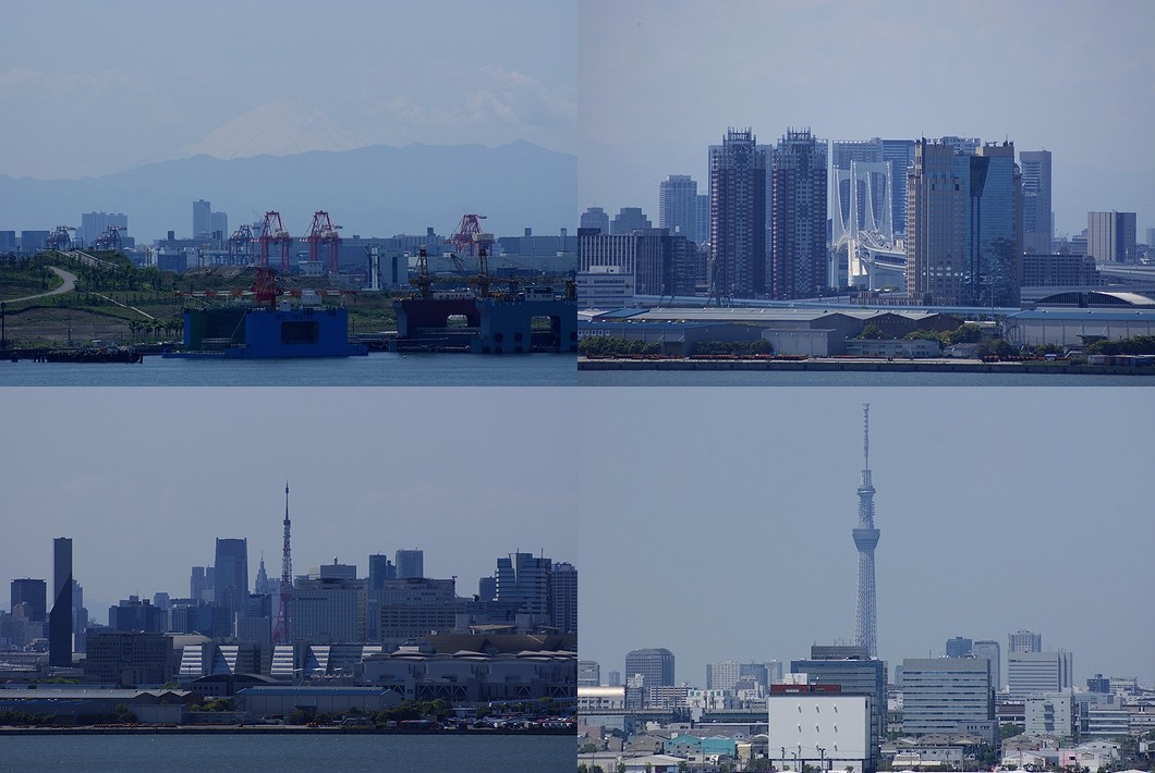 도쿄 게이트 브릿지에서는, 도쿄의 거리를 일망할 수 있습니다.바다의 색이 앞과 안쪽에서 차이가 나네요.