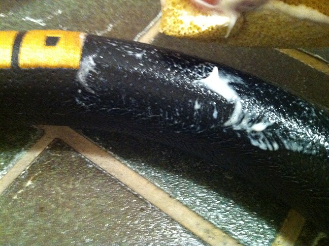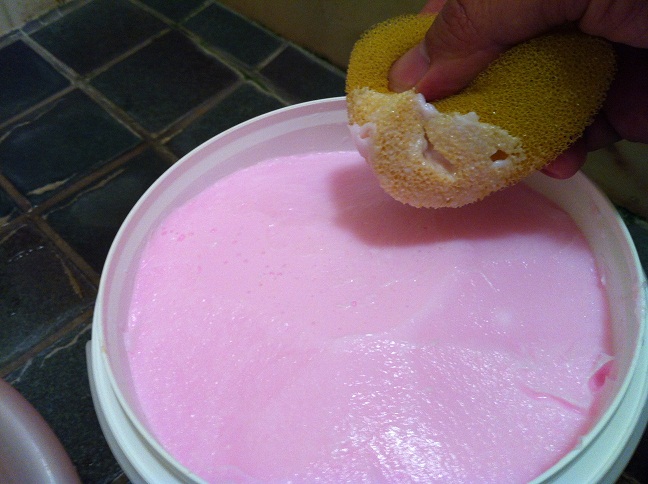 スポンジにクイックブライトペーストを取り、擦っていきます。