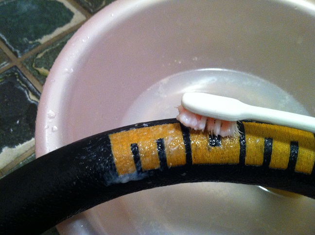 んで一通り磨き終わったら綺麗にふき取って水気を吸い取ってしばし陰干し。