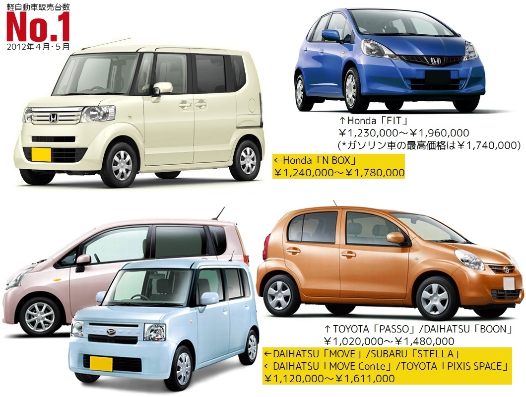 2012년 4월·5월의 2개월 연속으로 경자동차의 판매 대수 1위가 된 Honda 「N BOX」는, 같은 Honda의 컴팩트 카 「FIT」보다 1만엔 높은 가격으로 판매되고 있습니다.그런데도, 높은 인기를 얻고 있습니다.