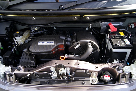 エンジン。排気量は軽自動車なので当然の0.66L。約1tの車体が、こんな小さなエンジンでキビキビ走るのかと思うと驚きです。トランスミッションは全車CVTです。