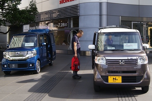 Honda가 자신을 가지고 발표한 경자동차 「N BOX」시리즈입니다.자주(잘)도 나쁘지도,가라파고스 자동차입니다.왼쪽은 「N BOX custom」, 오른쪽은 「N BOX+」입니다.