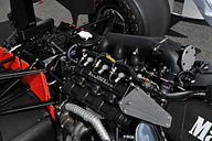 F1マシンのテストは、1986年のF1チャンピオンマシンである「ウィリアムズ・ホンダFW11」から。「レッドファイブ」と呼ばれた赤字のナンバー5 は、ナイジェル・マンセルの愛機の証しである。写真は走行開始を前に、タイヤの空気圧などを再度チェックしているところ。