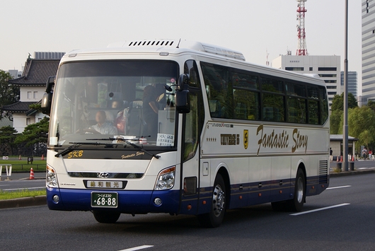 이 후, 「UNIVERSE」는 성 내부의 해자 대로를 남하해 나갔습니다.도쿄 타워라도 향했겠지요.큐슈에서는 고속 노선버스에 채용하는 버스 회사가 많은「UNIVERSE」입니다만, 수도권에서는 중국・대만・한국으로부터의 관광객 수송 전문의 버스 회사만 구입하고 있습니다.도쿄에서도 새로운 얼굴의「UNIVERSE」가 빌 수 있는 날은 오는 것입니까.