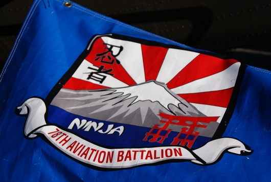 アメリカ空軍の基地ですが、基地内には国連軍と航空自衛隊の施設もあります。日米以外にはフランス軍がニューカレドニアやタヒチなどへ移動する際に中継点として使用しています。今回は、日米友好祭なので、米軍・自衛隊の航空機が集結しました。これは、横田基地にやって来たアメリカ陸軍キャンプ座間の第78航空大隊のマークです。