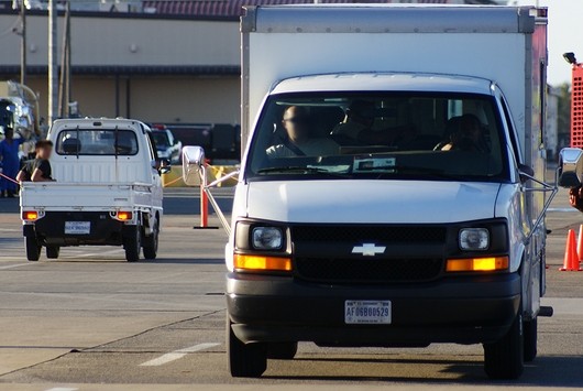 アメリカ軍関係の車両で、日本の公道を走ることができる私有車両は一般の車両と同じナンバープレートを装着しますが、用途を識別する「ひらがな」の部分が、アルファベットになっています。今回、八戸ナンバー=三沢基地の車両が来ていました。飛行機ではなく、車で来る兵士もいるですね。