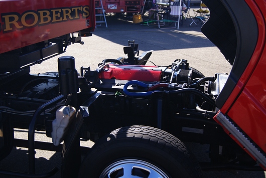 기지내에서 보인 트럭.엔진이 ISUZU가 아니고, Chevrolet 「CORVETTE」의 V8엔진이 되어 있습니다.연료는 가솔린입니다.