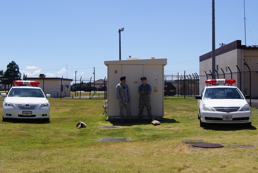 基地内の警察車両。TOYOTA「CAMRY」とTOYOTA「ALLION」ですね。基地の屋外は、日影が少ないので、大変です。
