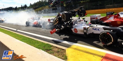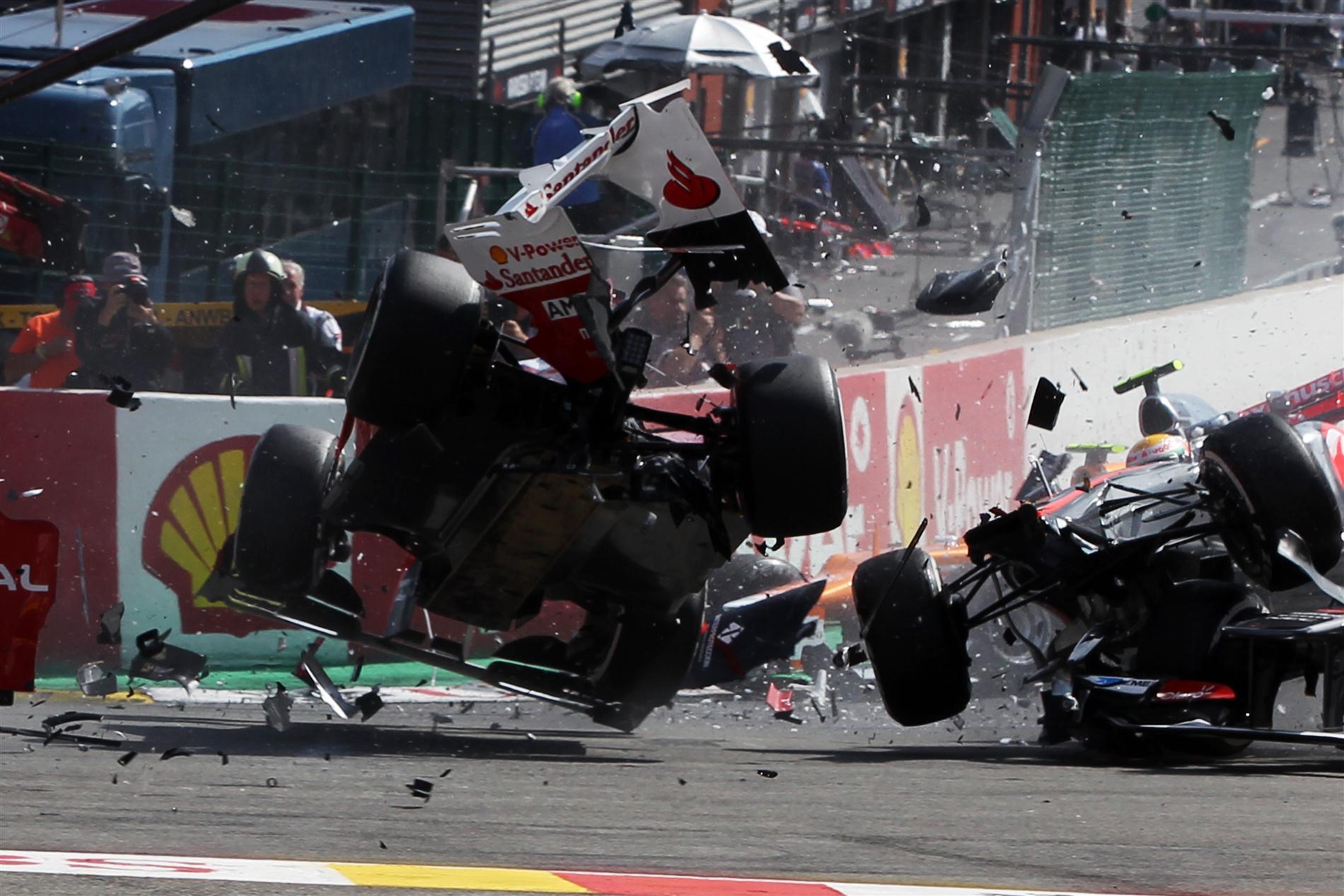 오른쪽으로 있던 해밀튼은 갈 곳을 잃어, 게다가 그로잘 에 대어진다.결과, 접촉, 스핀 후에 프런트 윙을 퍼올릴 수 있는 형태로 그로잘의 차에 올라앉아.그대로「견인」상태에.