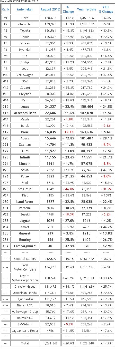 KJCLUB - 2012年 8月アメリカ自動車販売順位��