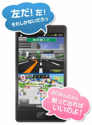 「스마트 폰이라고 해도 네비게이션의 기본 기능은 현상에서도 충분한 실용 레벨에 이르고 있다.네비 기능의 추구만으로는 차별화가 어렵고, 당사에서는 성우 네비나 갈아입히기라고 하는 컨텐츠를 강화해 엔터테인먼트 네비로서 차별화를 도모해 가고 싶은」(하라오씨).