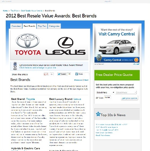 2012 Best Resale Value Awards: Best Brands